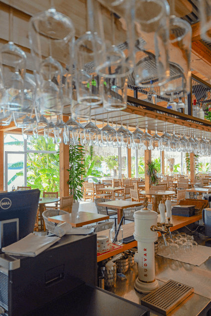 offers a serene backdrop for enjoying exquisite cuisine and refreshing drinks.